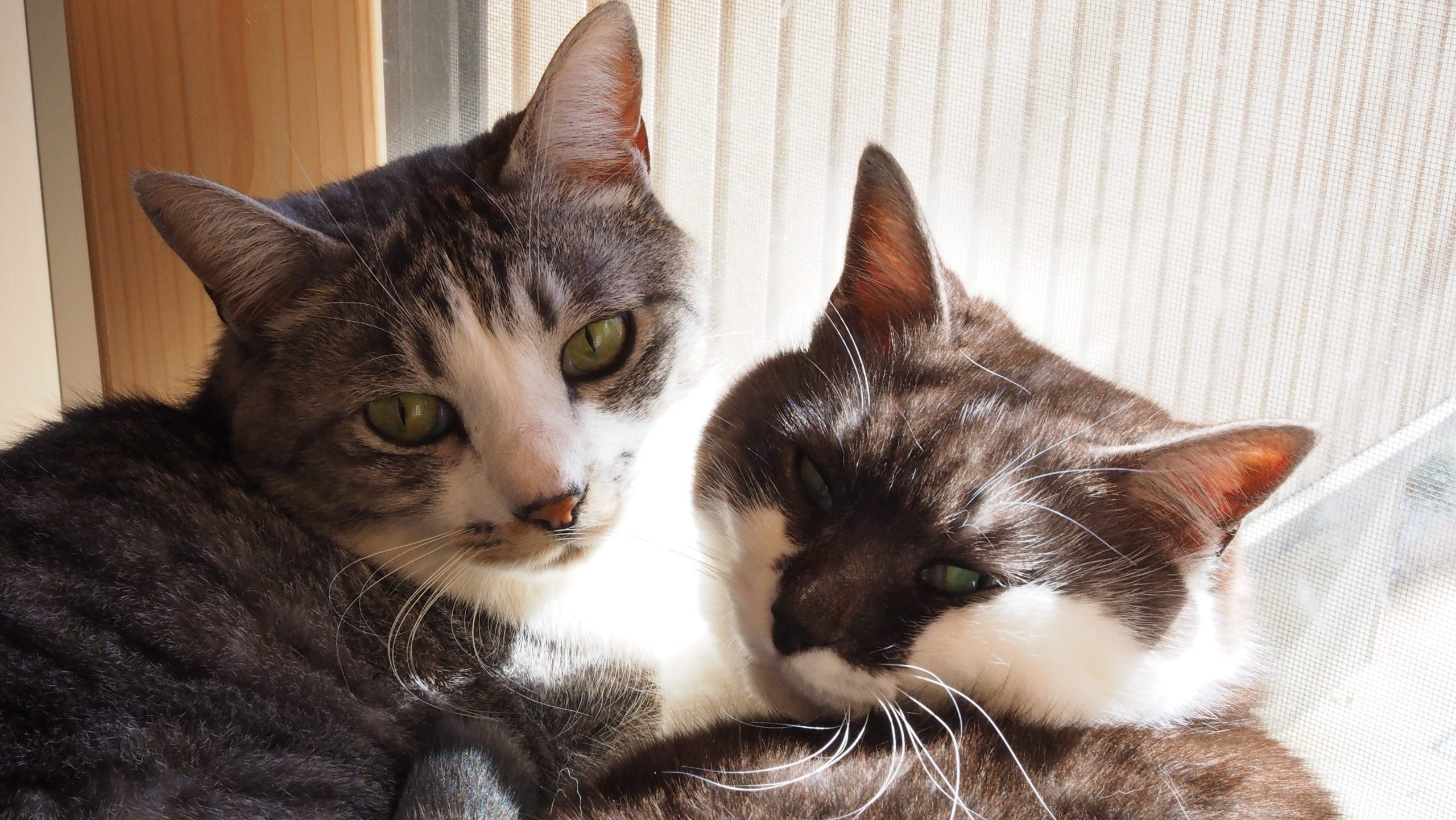 白黒のマスク猫で黒部分はブラックスモークと言われる根元が白いタイプ。