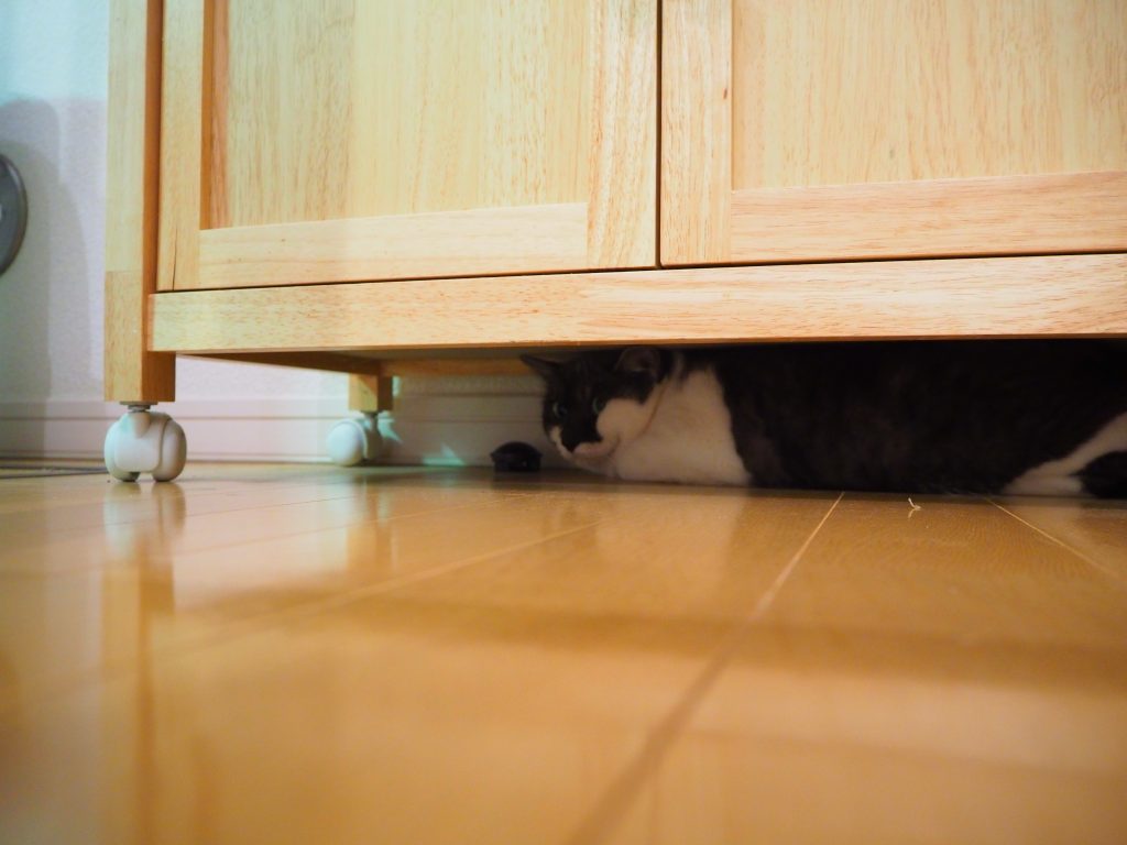 このあとは棚の下に隠れて過ごしました。