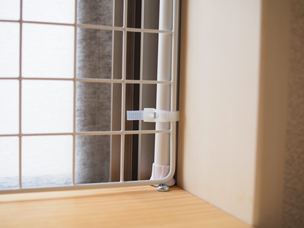 固定した突っ張り棒と網も結束バンドで固定して