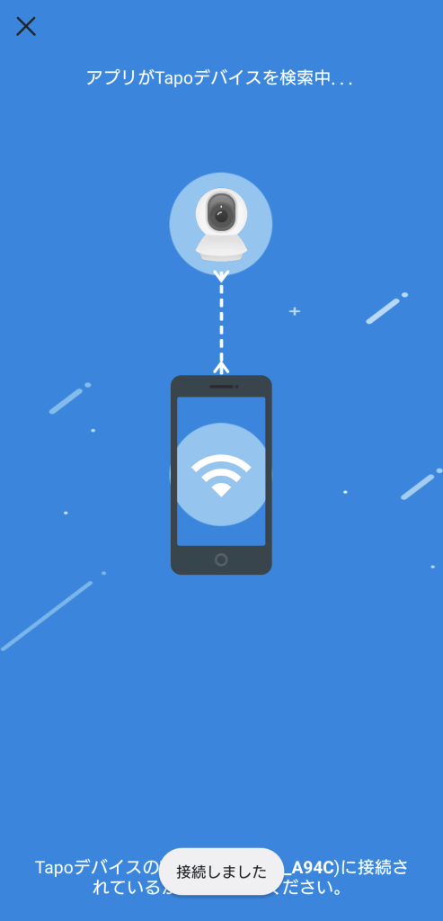 カメラとの接続完了後は、そのカメラをWi-Fiに接続するための設定をします。