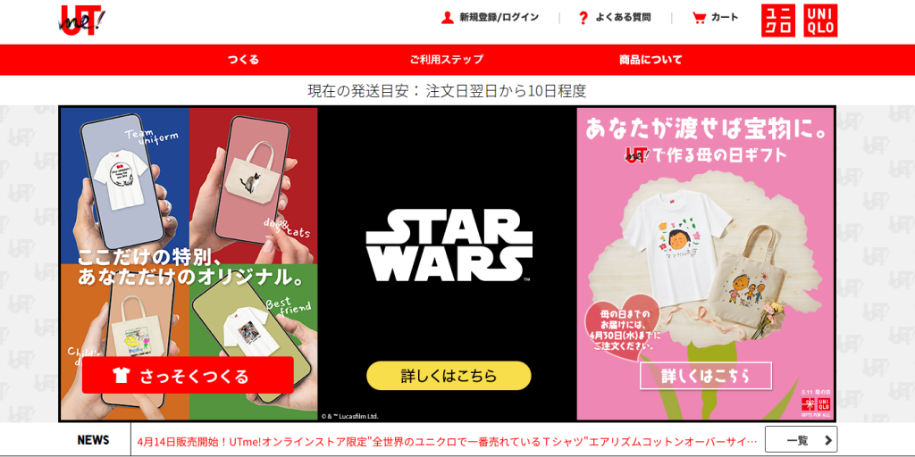 あの有名メーカのユニクロでオリジナルTシャツを作ることができます。