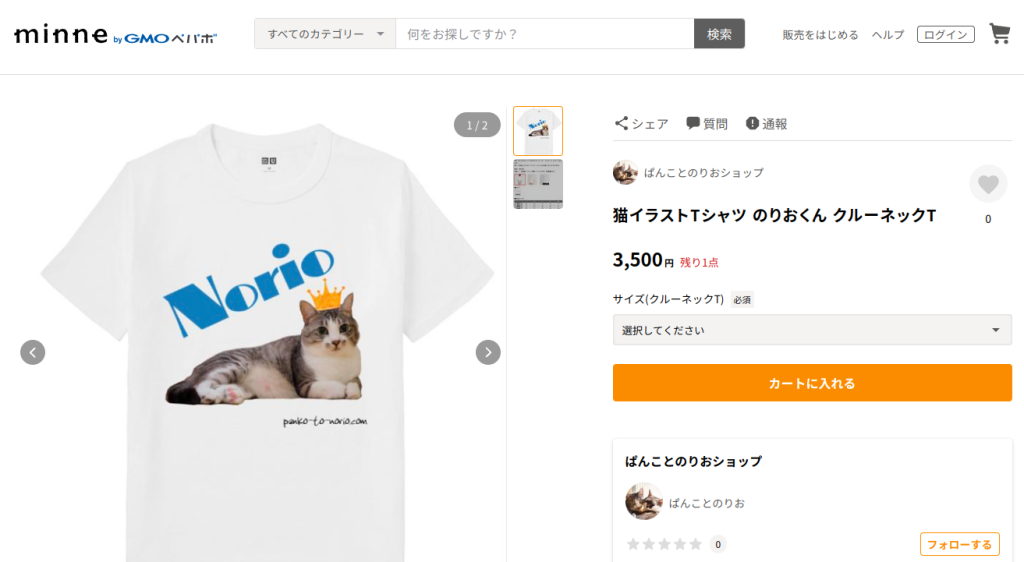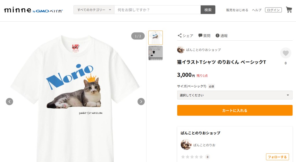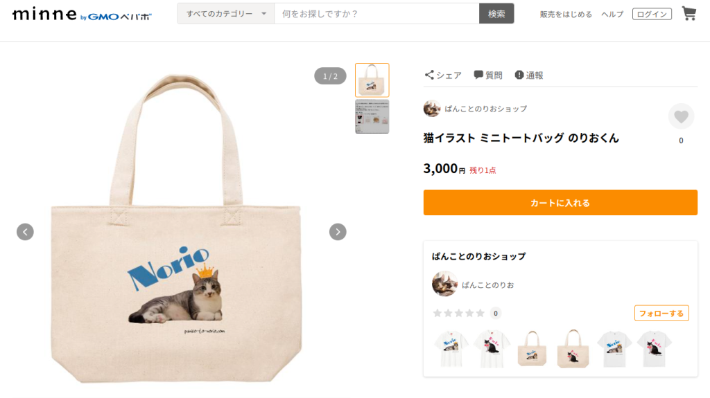 現在、メルカリとminneにてのりぱんTシャツとミニトートバッグを販売中です。
