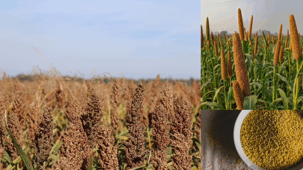 また、粟(アワ)はエノコログサを改良した穀物で穂も株も大きめで、畑で栽培されます。