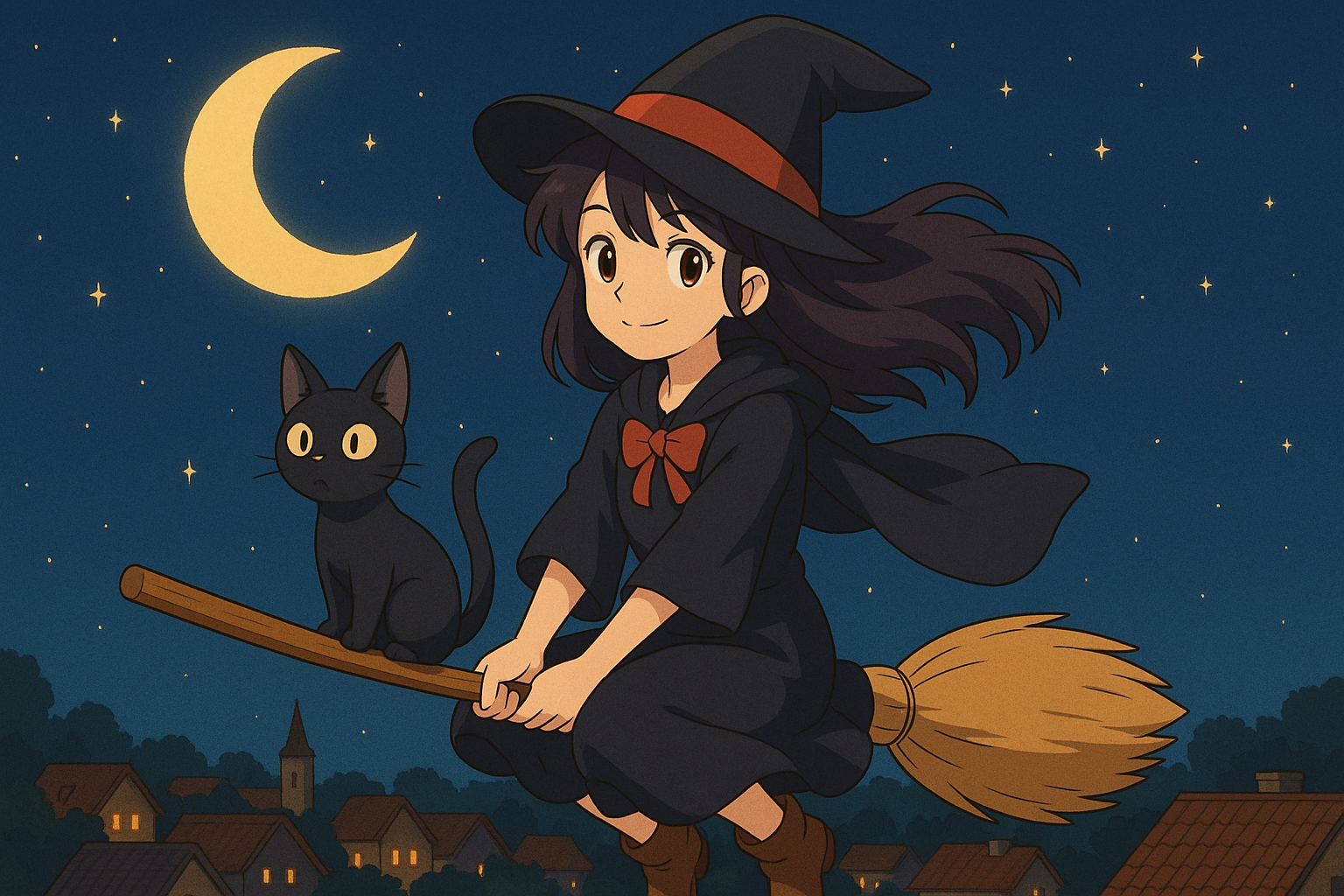 日本で一番有名な魔女と黒猫といえば、魔女の宅急便でしょうか。